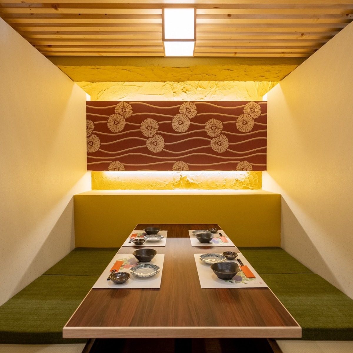 全席個室で、2~4名向けのテーブル席や、最大44名まで対応可能な掘りごたつ席も完備。忘年会や接待、友人同士の集まりなど、さまざまなシーンで利用できます。松山市大街道のアーケードから徒歩30秒という好立地も魅力の一つです。