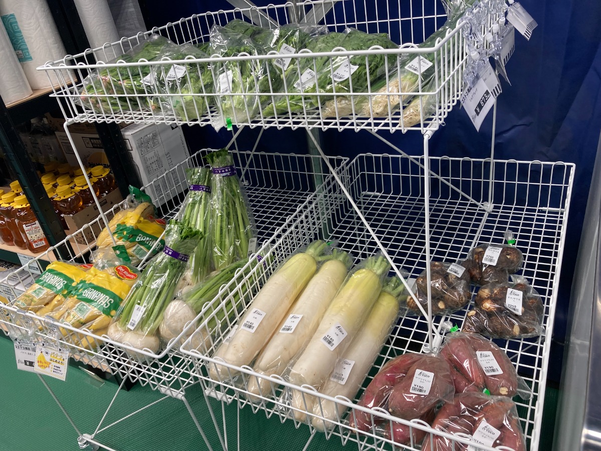 休日はコストコのパン、平日は「朝採れマルシェ」として地元農家直送の野菜も販売しています。