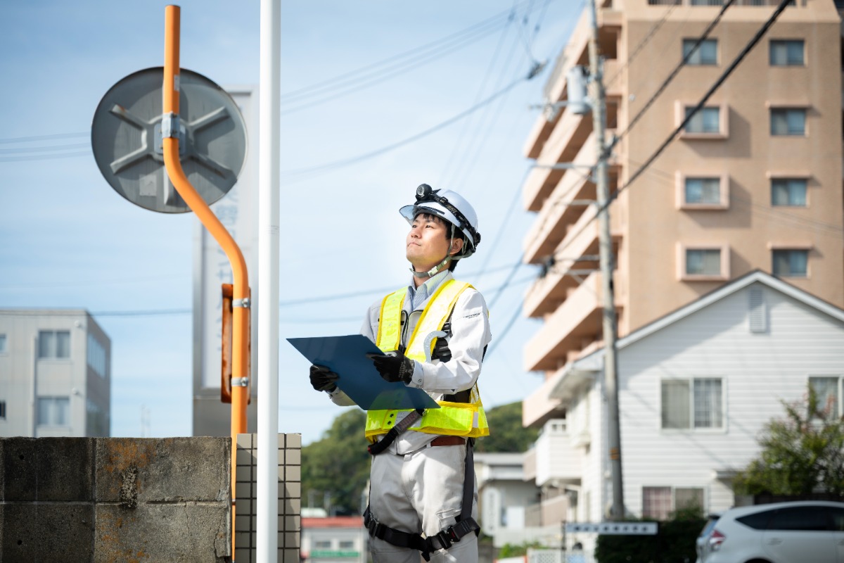 標識などの道路附属物や橋梁など、様々な社会インフラの点検作業を担っている米澤さん。