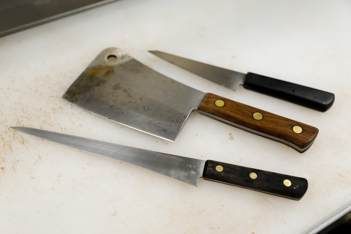 肉を捌く包丁です。3年間ずっと使ってきたメインの包丁の他、肉の種類や調理方法でも使い分けています。