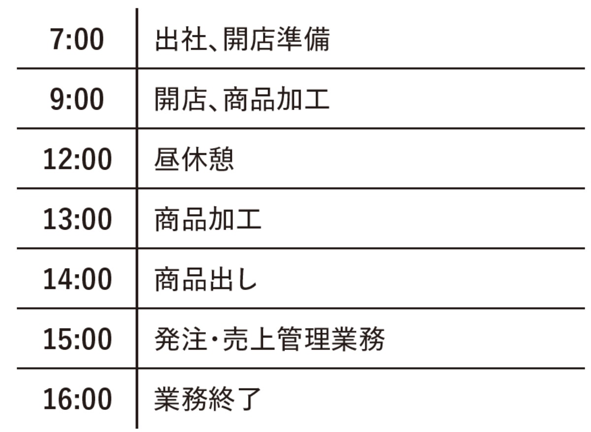 商品の加工作業です。自分の成長が感じられるし、なにより商品製造の一端を担っているというやりがいがあります。