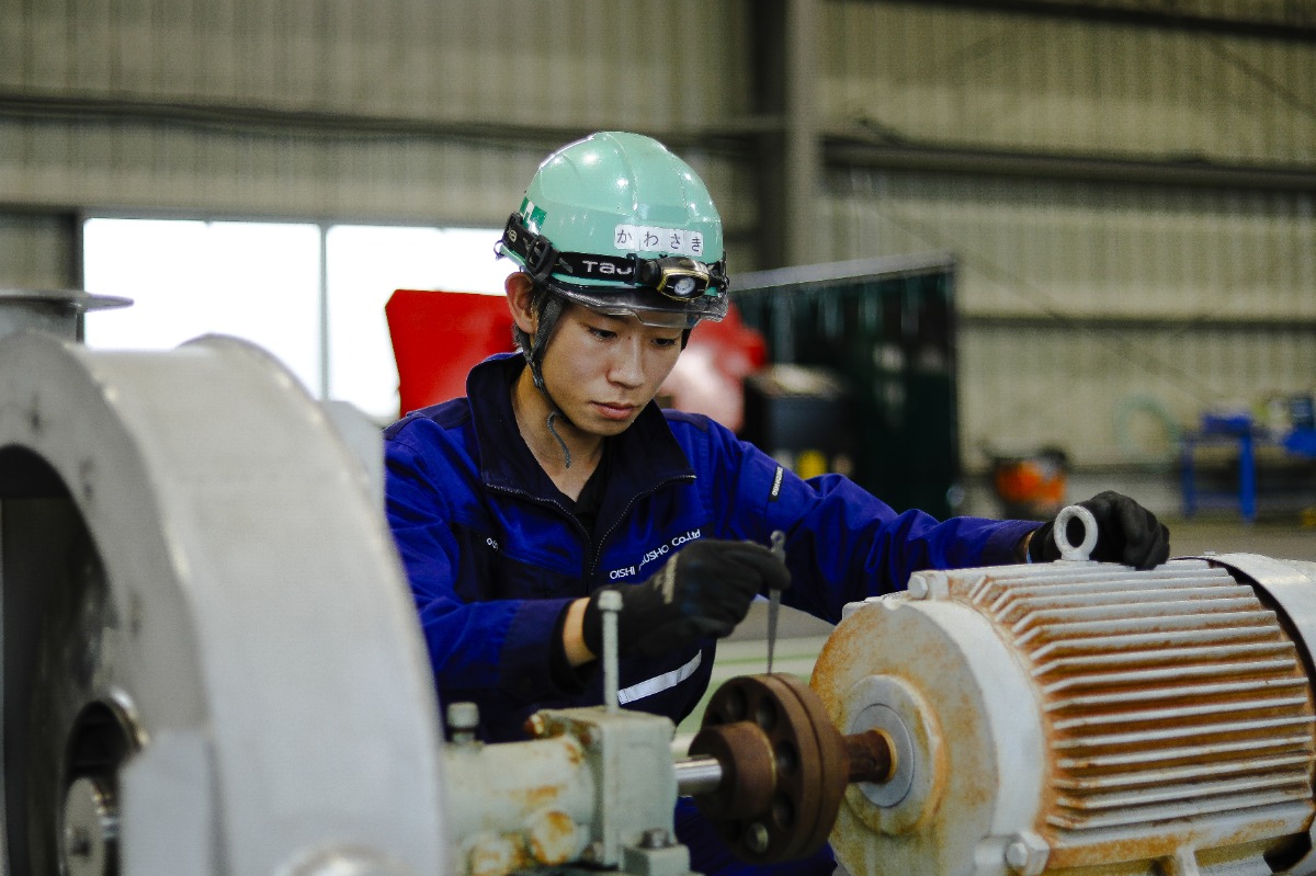 化学薬品を扱う工場内での作業となるため、常に安全第一を心に留め作業に臨む。現在はプラントの中枢ともいえる回転機のメンテナンスを担当。同じ班の先輩から指導を受け、徐々にできる作業が増えてきたことに手応えを感じるという。