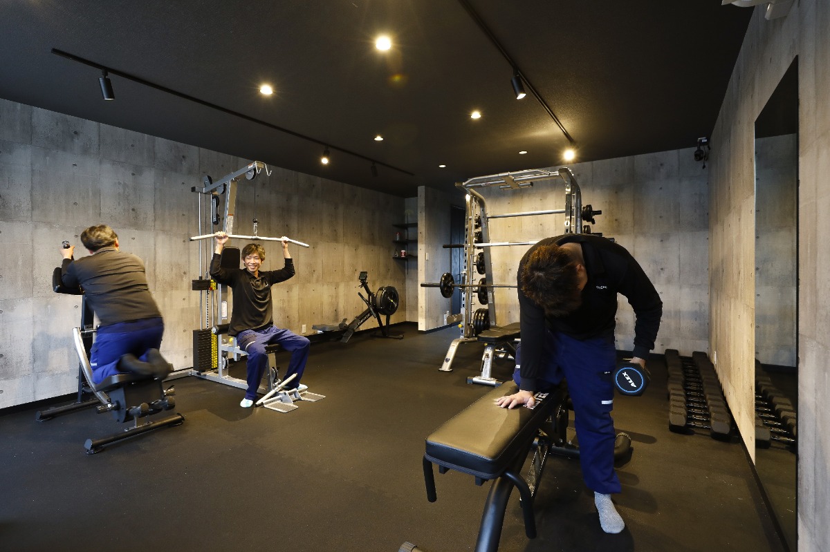 新居浜市内に社員専用ジム「OISHI GYM」があり、24時間利用できます。仕事終わりに同僚と汗を流すことも!