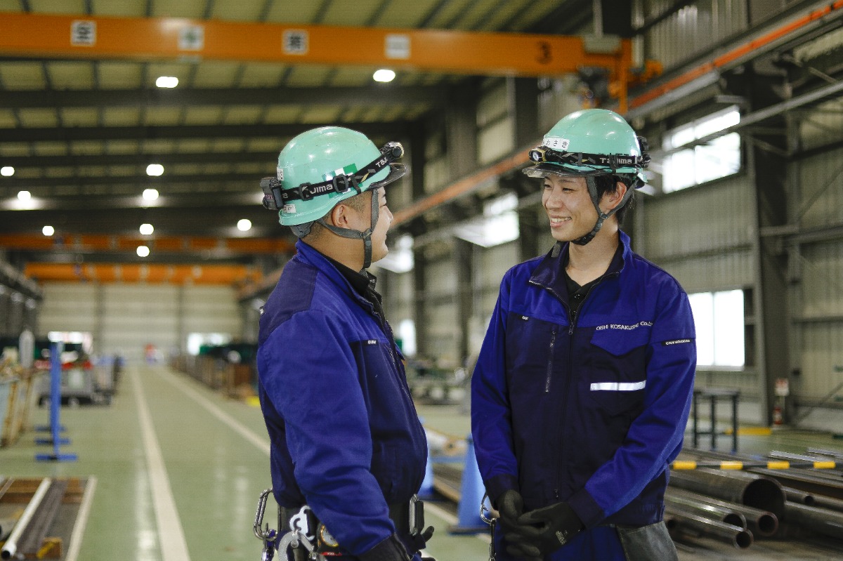 入社当初は溶接に興味を持っていたが、ジョブローテーションで各部署を研修するなかでプラントでの作業に面白みを感じたという川﨑さん。「最初に大石工作所の全容を知ることができよかったです。自分は体を動かすのが好きなので、現場仕事が合っていると思いました」と志望し菊本営業所に配属された。