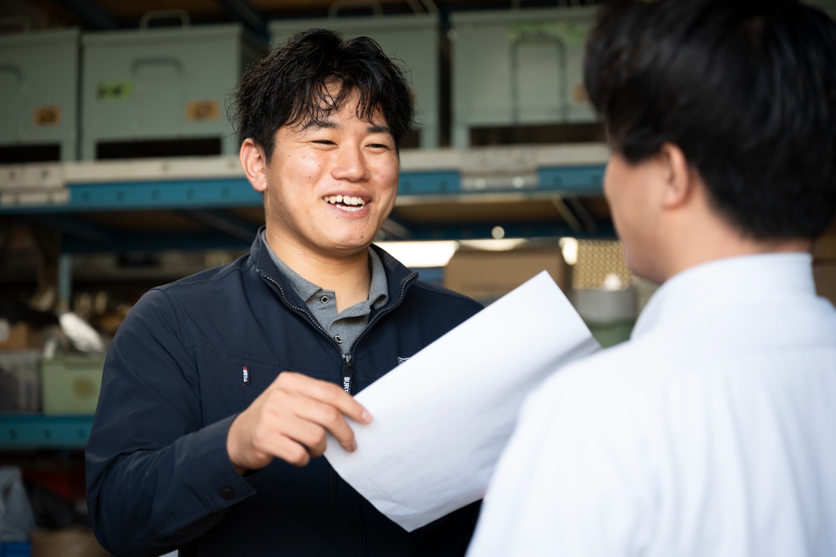 持ち前のバイタリティとメンタル面の強さ、人懐っこさで得意先や社内からの信頼も厚い。後輩には、自身が新人の頃に困っていた経験に基づいてアドバイスやフォローをしっかりしてあげる頼もしい先輩でもある。