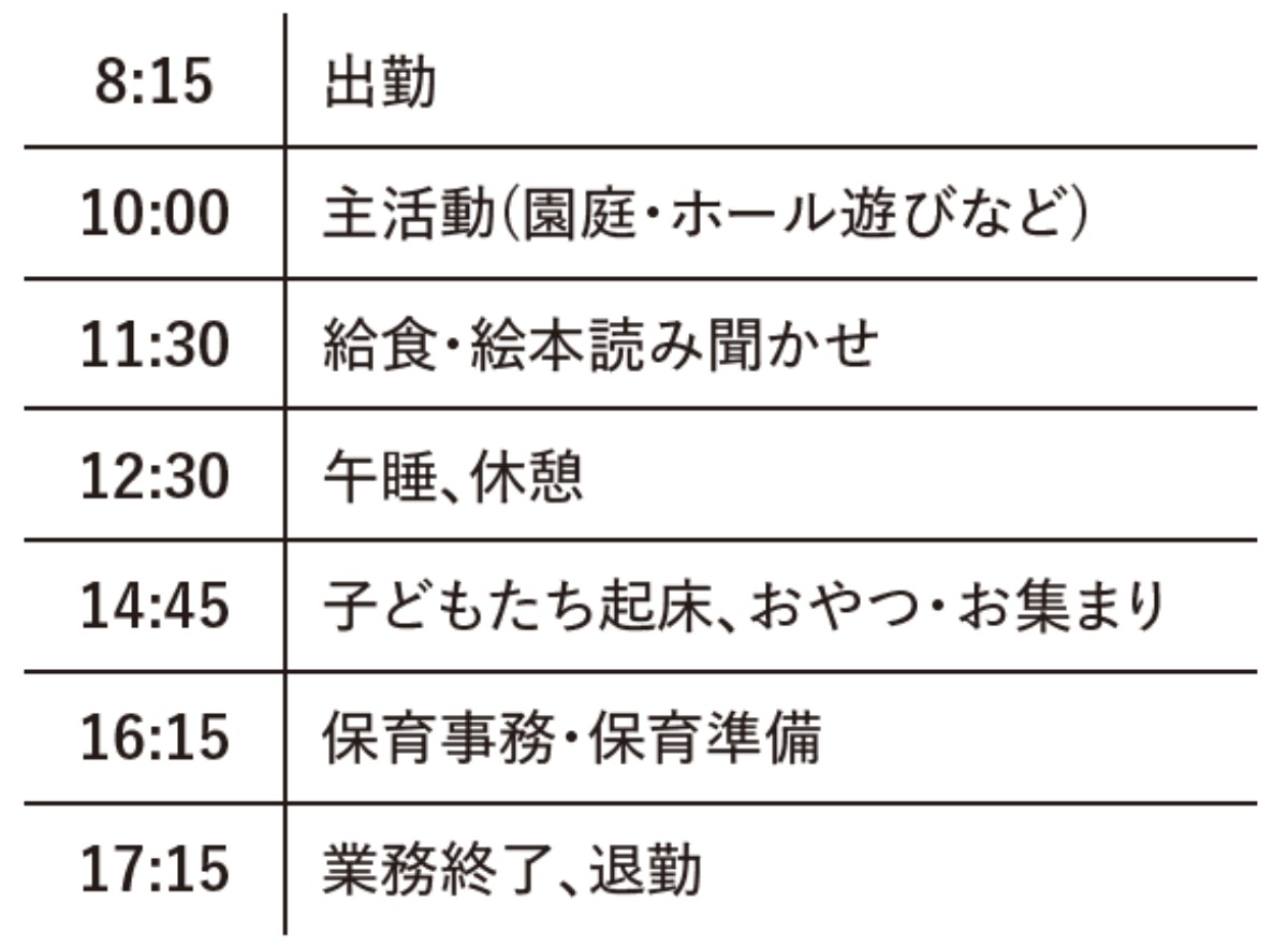 復帰後は短時間勤務を選択できるなど、保育士が働きやすい職場づくりを推進している。