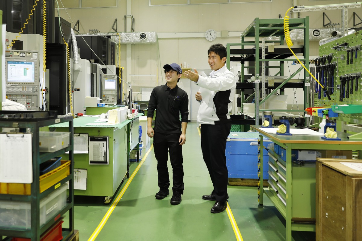 「作業中に出た金属の切粉で新品の部品に傷がつくと、それだけで数十万円の損失になることも。そのようなミスを防ぐべく、整理整頓や安全面は常に気を配っています」と真剣な表情で語る。「将来は特に品質管理レベルの高い宇宙・航空関連の部品製造に携われたら」と、高い目標を持ち日々業務にあたっている。
