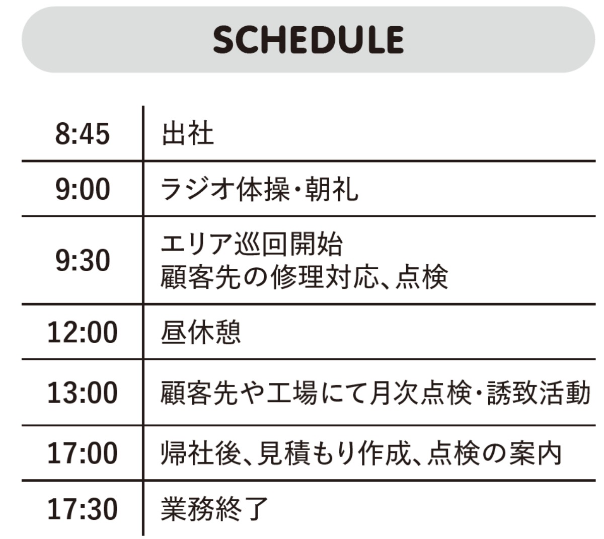 ●勤務時間/9:00~17:30(休憩時間60分)