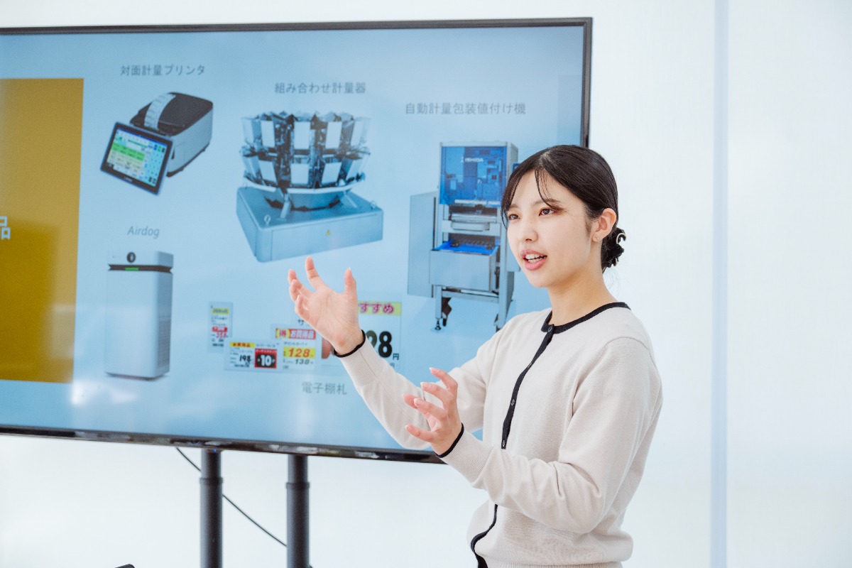 自分が知りたかったことや入社してから実際に感じたことなど「四国イシダ」の魅力を学生に寄り添った視点で伝えたいという。「ポテトチップスの計量ってこんな機械でしているんだ。すごい!」と感動した想いを今度は後輩にアピールする番だ。