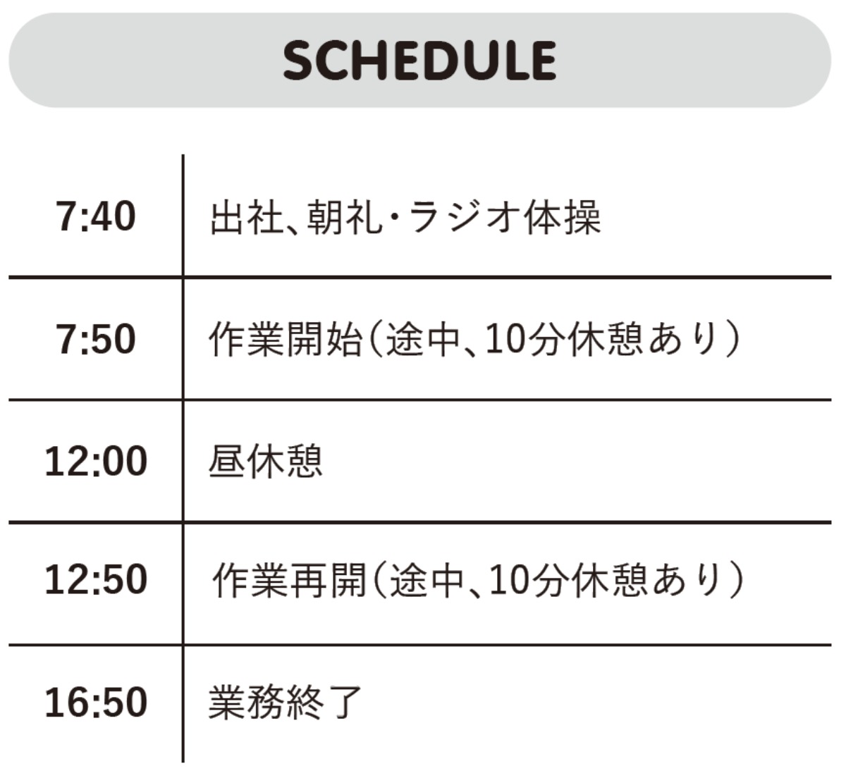 ●勤務時間/7:50~16:50(休憩70分)