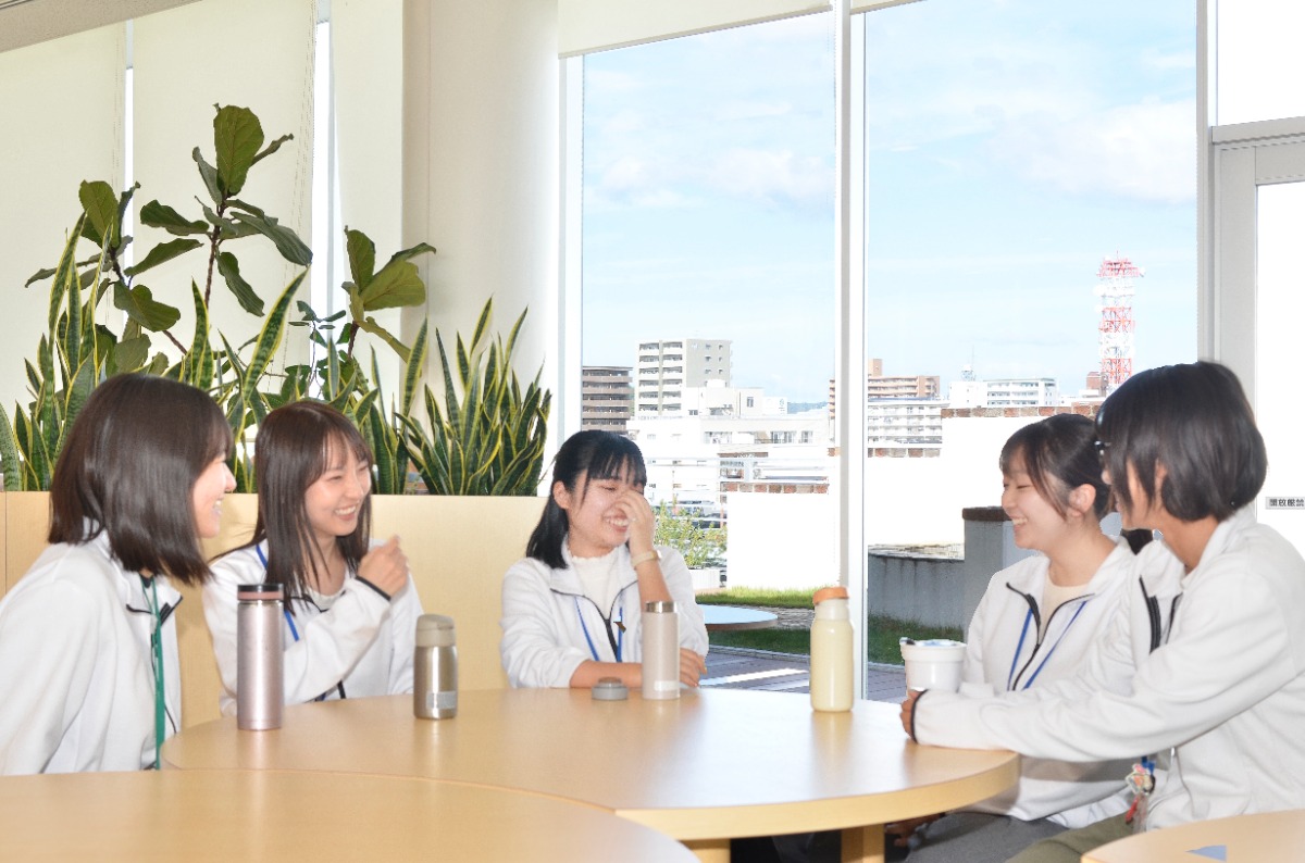 カフェのような休憩室もお気に入りの場所です。ランチタイムには、畳スペースに集まってよく談笑しています。
