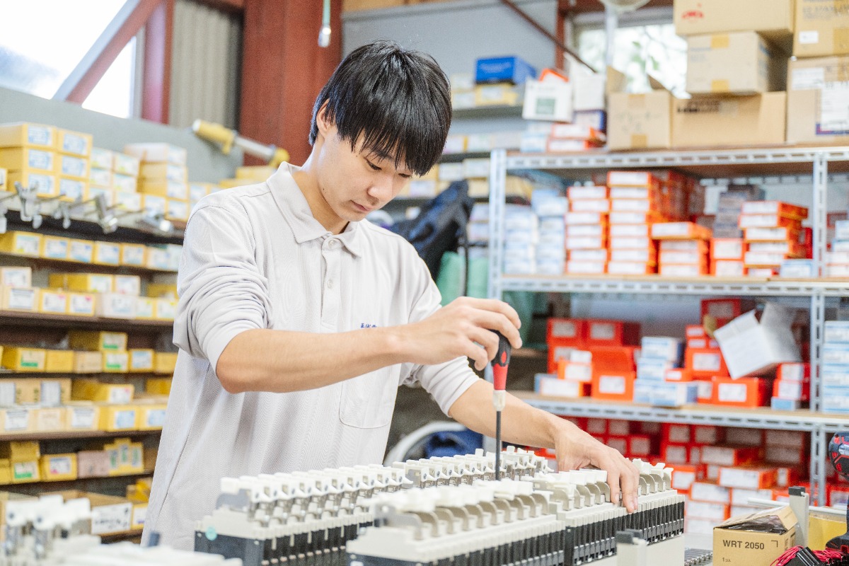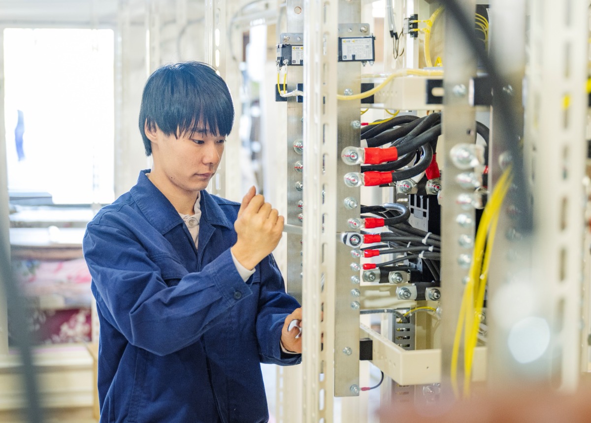 「今はまだ小さい製品の配線や組み立て業務が中心ですが、いつかはクレーンなどを使う大規模な製品の配線・製造に携わりたい」と、確かな成長への意欲も見せてくれた。
