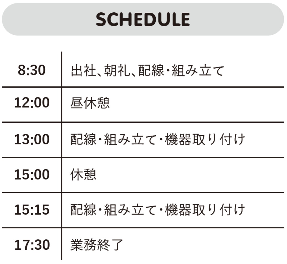 ブレーカーなどの配線作業は、案件をこなす度に出来る事が増えていってます。自分の成長を感じられますね。