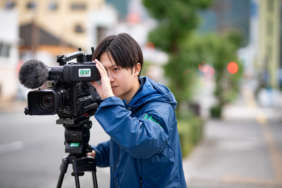 運動会やお祭りなどの行事が重なる時期には、カメラを担いで現場へ急行。撮影・編集作業をこなすなど様々な業務を経験し、着実に成長している彼は「上司の負担を少しでも軽減できるように、もっと技量を身につけたい」と前を向く。