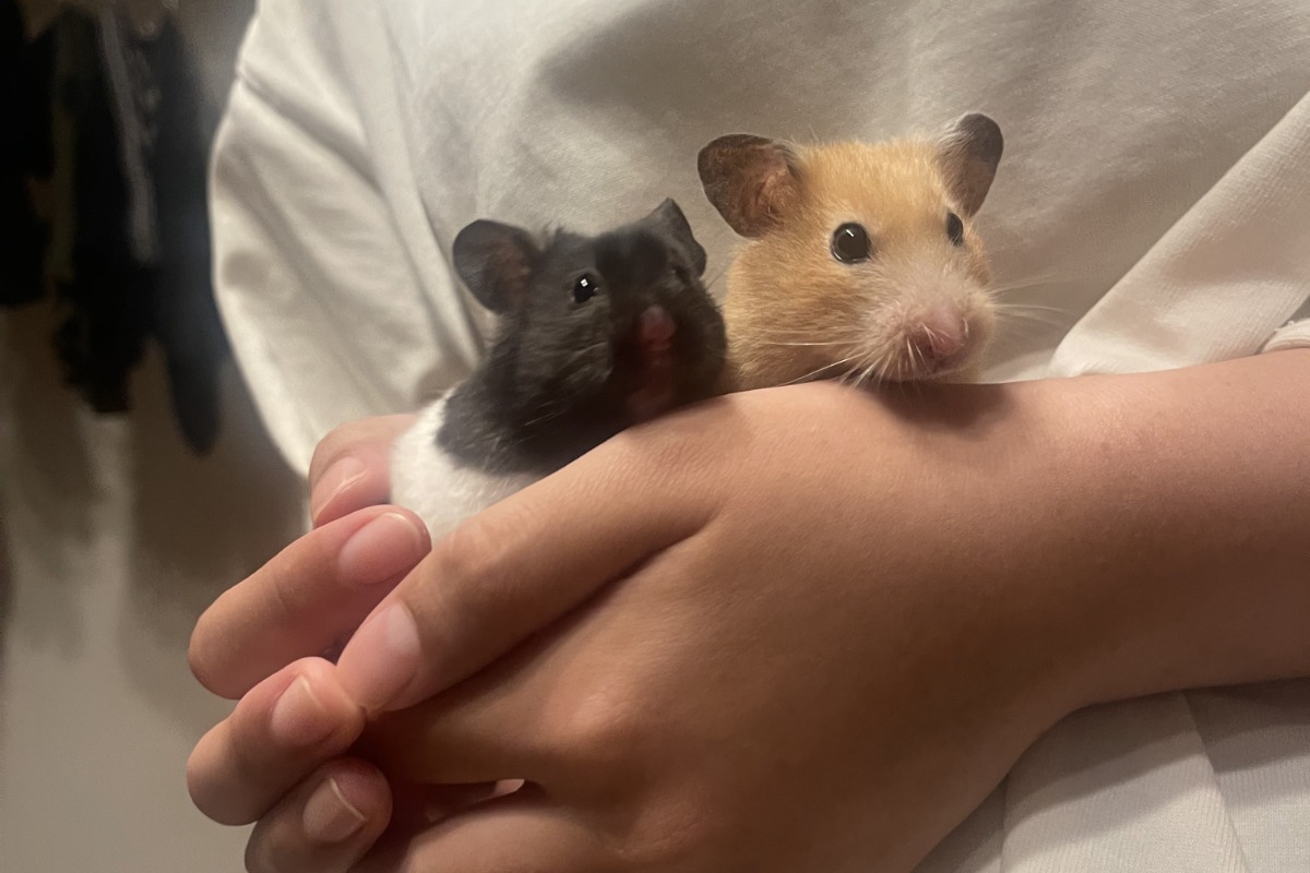 休日は、ペットのハムスター2匹と触れ合って癒やされています。ドライブや買い物にでかけることも!