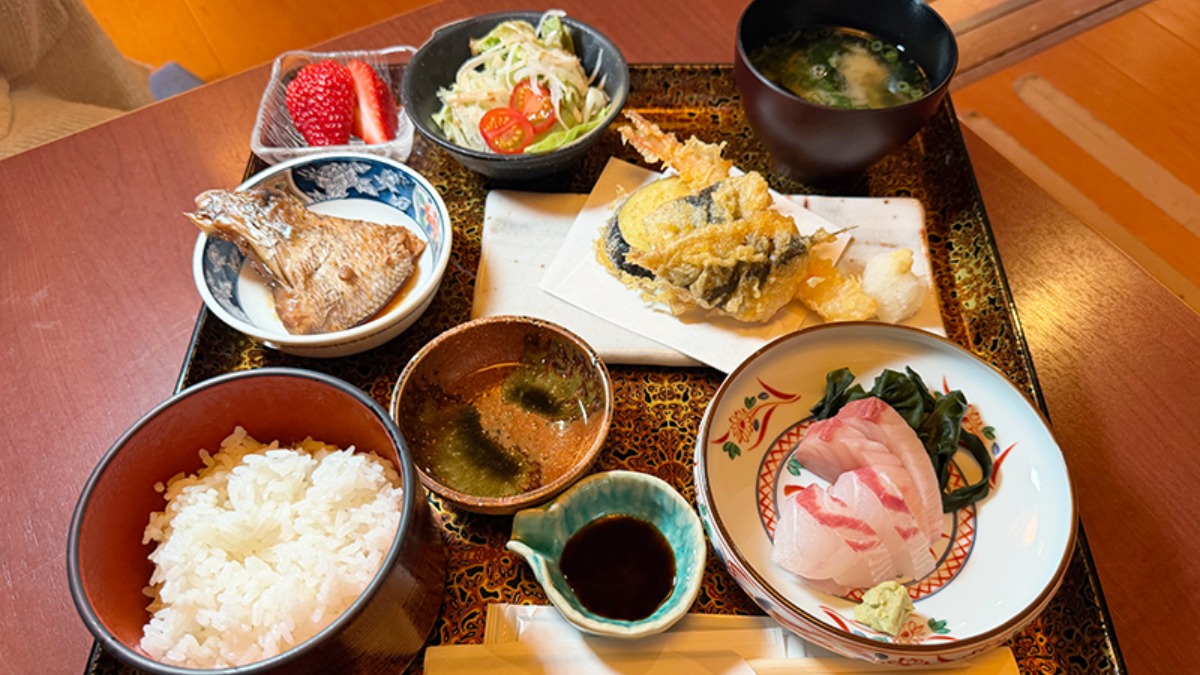 メインが選べる「日替わりランチ」(790円)は副菜が3種類もあり、地元食材をふんだんに利用しています。