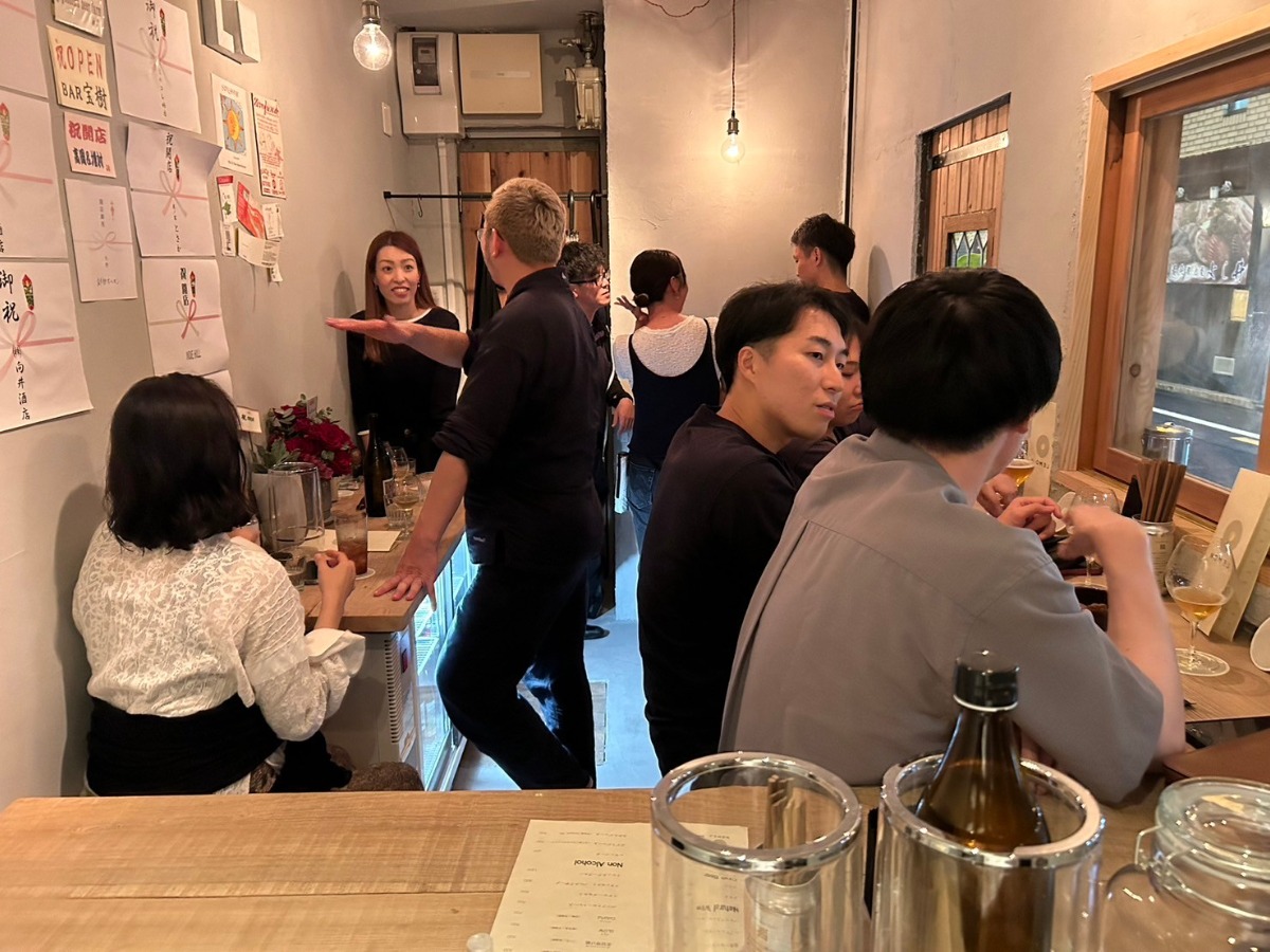 店内はわずか3.89坪というコンパクトなスペースながら、温もりに溢れた独特の雰囲気が広がります。立ち飲みスタイルを採用しているため、自然とお客さん同士の距離が縮まり、フレンドリーな空間が生まれています。オーナーの栂村佳秀氏の明るい人柄と丁寧な接客も、訪れる人々にとって大きな魅力のひとつです。また、新宿ゴールデン街のレモンサワー専門店を参考にしたという店内デザインは、どこか懐かしさを感じさせつつも、モダンな感覚が融合しています。