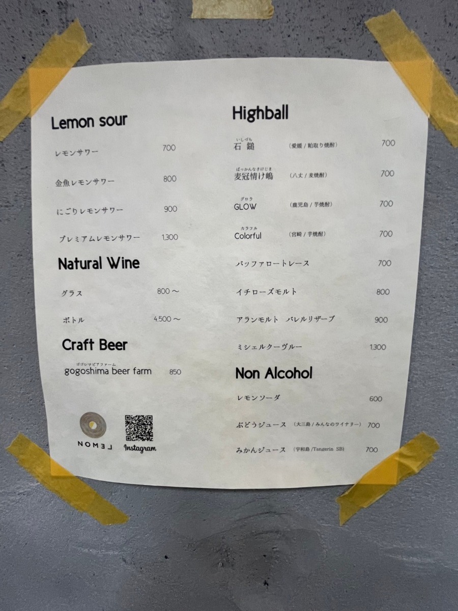 「Nomel」(ノメル)というユニークな名前は、LEMON(レモン)を逆さました言葉遊びから生まれ、オーナーの「レモンに特化した最高の体験を提供したい」という情熱を感じさせます。特に、地元愛媛の興居島産レモンは、フレッシュで香り高い味わいが特徴。そのレモンを使ったレモンサワーは、地元民にも観光客にも好評を得ています。