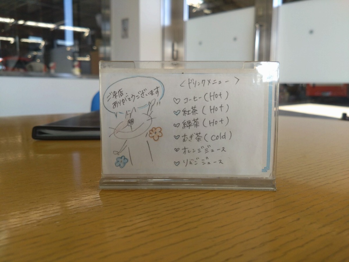 「伊予鉄カーセールス」では、待ち時間中にドリンクを楽しみながら、ゆっくりと車選びができます。