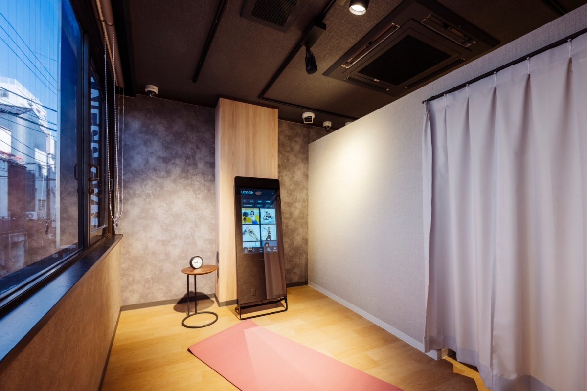 2階のミラーフォットフロアでは、オンラインフィットネスでは日本初の身体の動きを読み取り、正しいフォームへ導くAI機能を搭載しています。