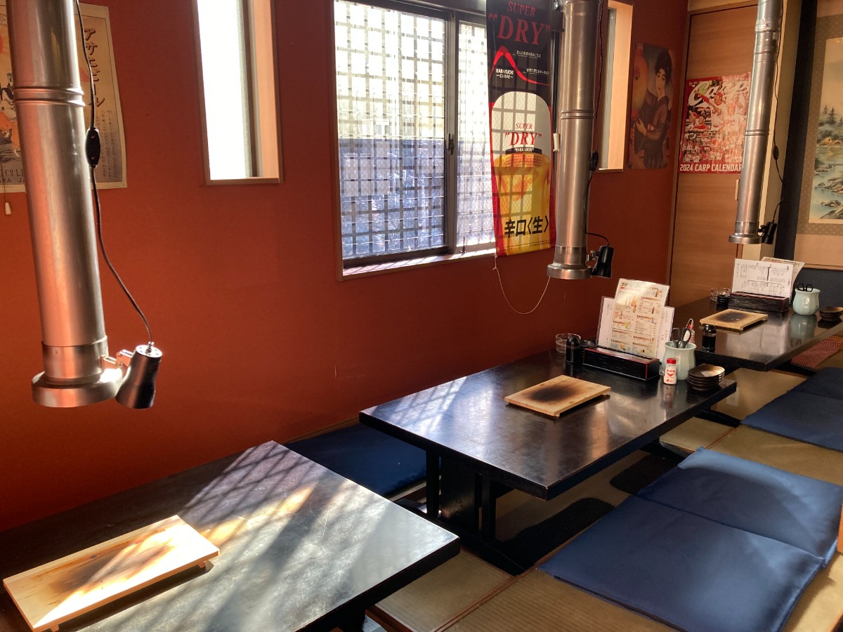 店内一階はカウンター9席、座敷は13席、2階は30人まで収容可能です。