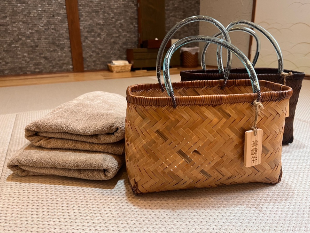部屋にはかわいい湯籠が用意されています。手に提げて道後の街を散策してみてください!