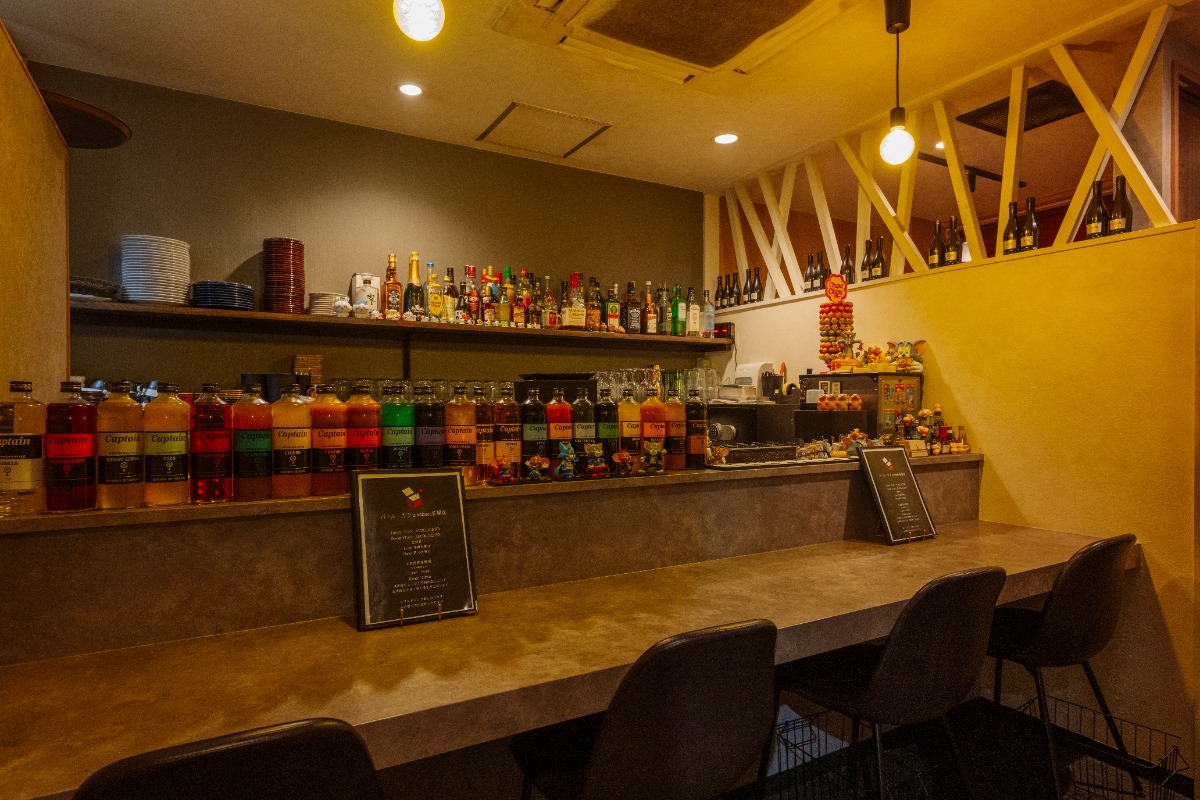 華やかなフルーツワインカクテルが並ぶカウンターもおすすめです。