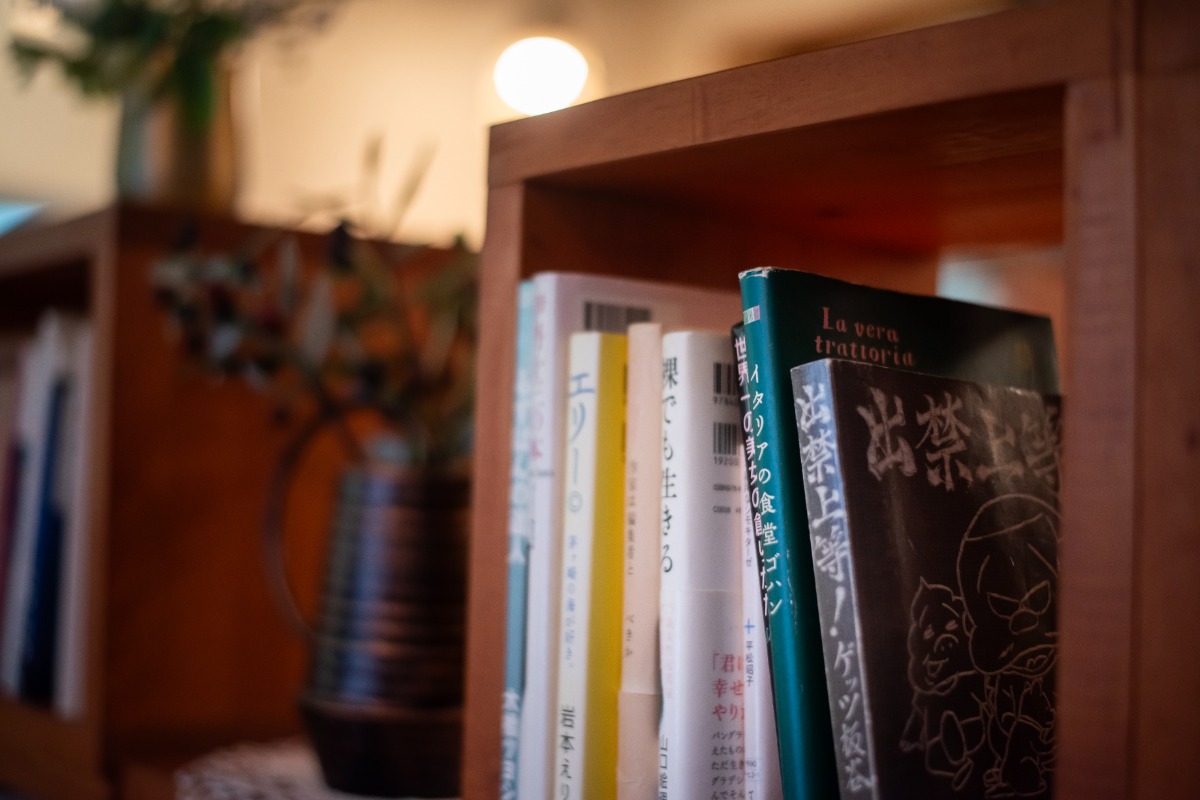 グルメ本から小説まで様々なジャンルの本が並びます。