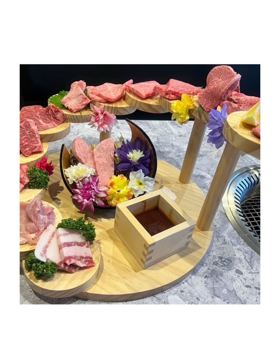 「焼肉 肉乃宮」でぜひ試して欲しいのが、特別な日や記念日にぴったりの「階段宮盛り」(2~3人前)です。厳選された上質な肉を、オーナー自慢の自家製のタレにつけて食べてください。見た目も華やかで、贅沢な気分を演出してくれます。