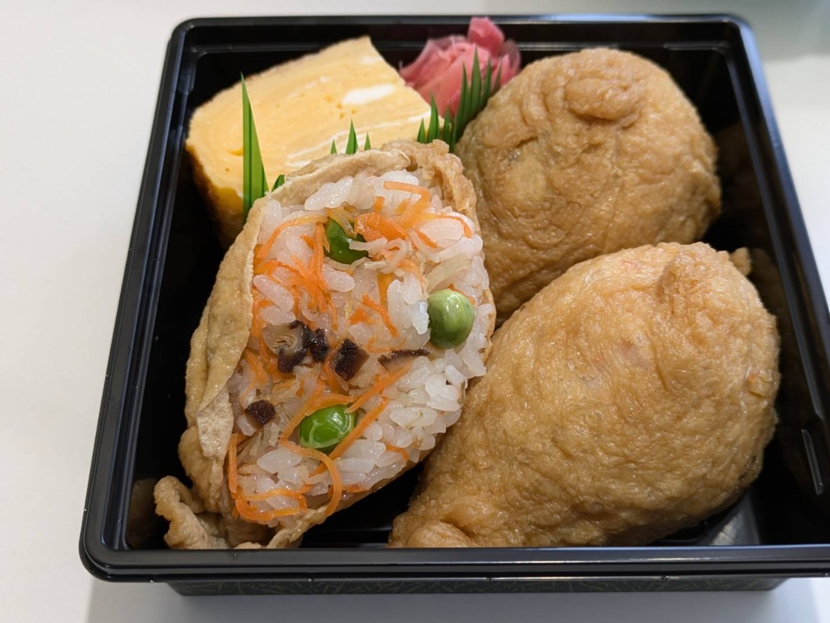 おすすめの「五目いなり」は、ゴボウ、シイタケ、ニンジン、グリンピースなどがたっぷり詰まった贅沢な一品。