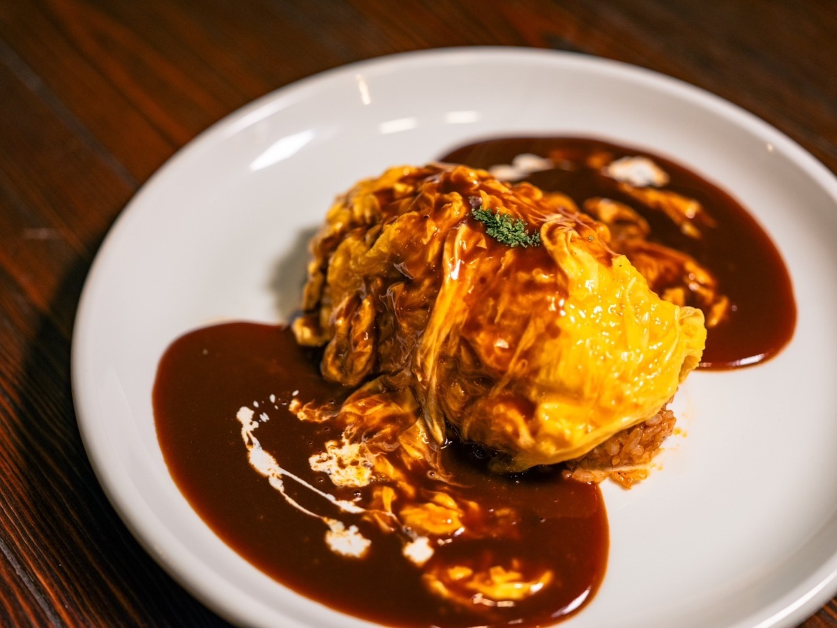 ランチの看板メニューである「デミグラスオムライス」は、ふわとろの卵とコクのあるデミグラスソースが特徴。お子様から大人まで楽しめるやさしい味わいが大人気です!