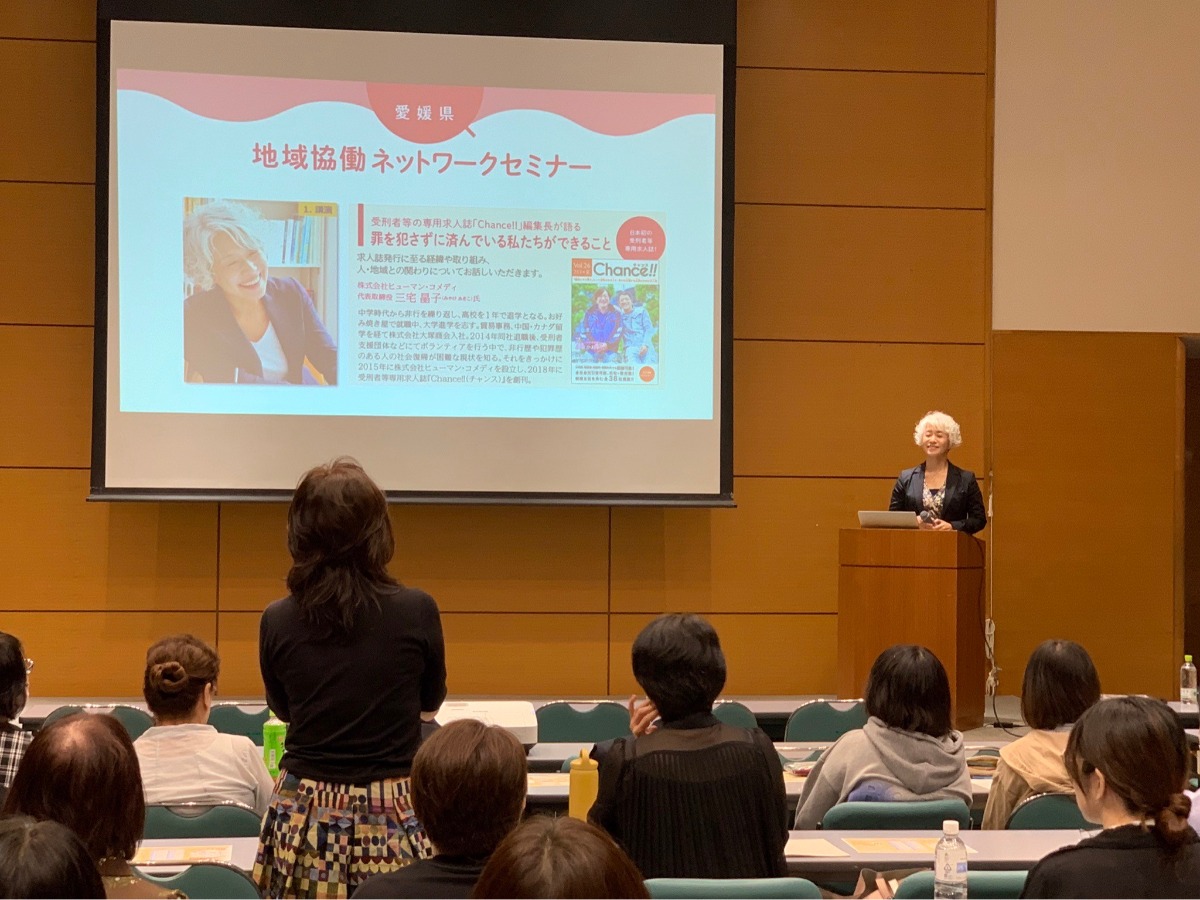 第1部では、受刑者等の専用求人誌「Chance!!」を発行する、株式会社ヒューマン・コメディ 代表取締役 三宅晶子氏の求人誌発行に至る経緯やこれまでの活動についてのお話から、“協働”のきっかけとなるポイントを学びました。