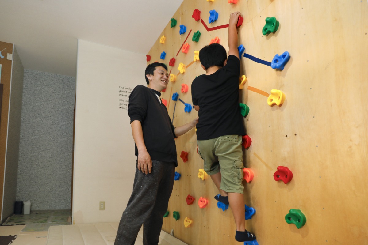 プレイマットを敷いた安全な空間。ボルダリングも!