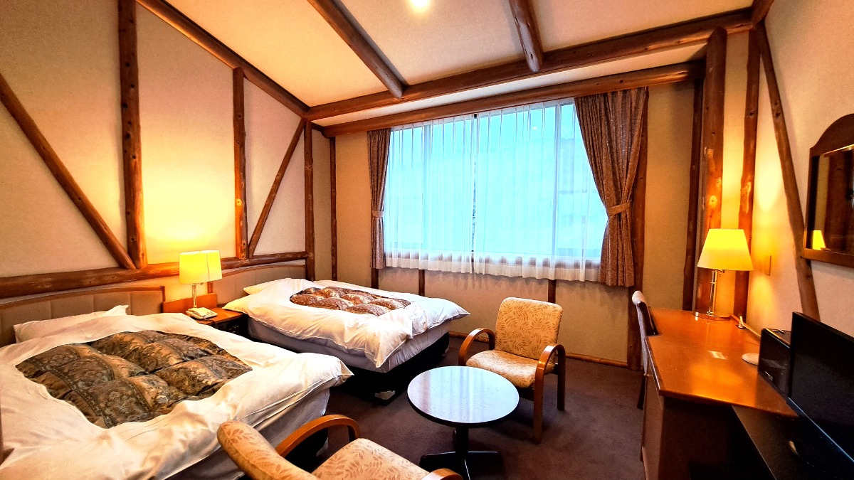 和室と洋室ツインの2タイプを完備しています。全室から四季折々の景色を望むことができるのが「花の森ホテル」の醍醐味です。