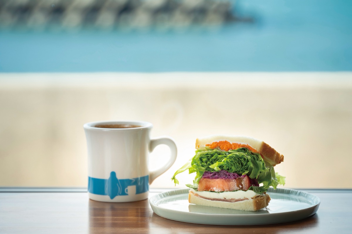 お隣同士の立地を活かし、「ute」で購入したサンドイッチを「CafeShozan」に持ち込んでワンメニューオーダーすれば、カフェ店内で飲食可能です。瀬戸内海を眺めながら、美味しいサンドイッチとコーヒーで、ゆっくり島時間を堪能することができます。