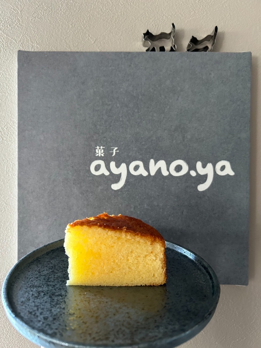 写真は、とろけるような生地が特徴の看板ケーキ「ayano.ya」。