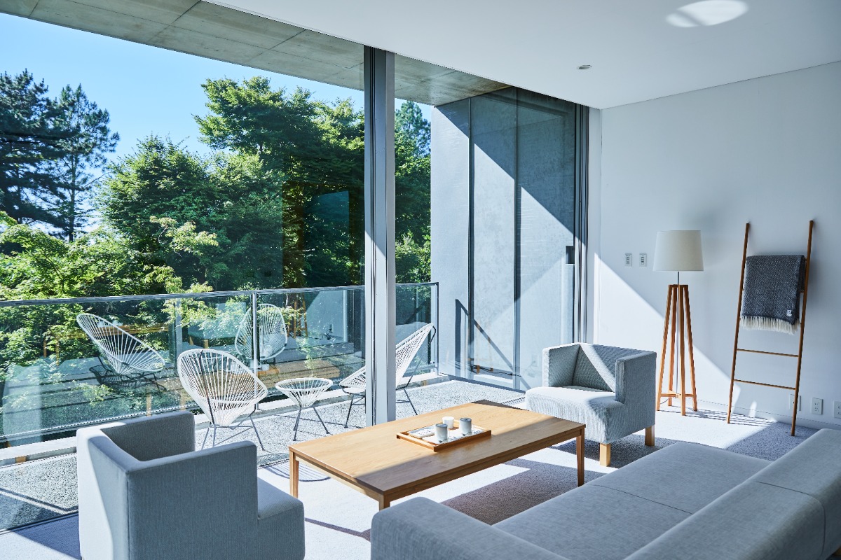 「青」は海と空を、「凪」は静寂な時間を象徴し、各フロア1部屋のオールスイート仕様、全7室のみのプライベートな贅沢空間が広がっています。