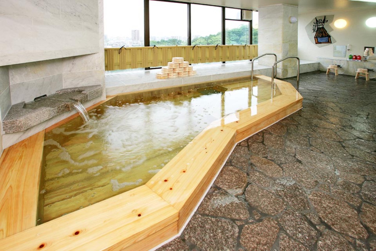 中浴場「マドンナの湯」も檜風呂でサウナ付きなのが嬉しいポイントです。道後温泉の泉質はアルカリ性単純泉で、神経痛や関節痛の改善効果が期待できると言われています。