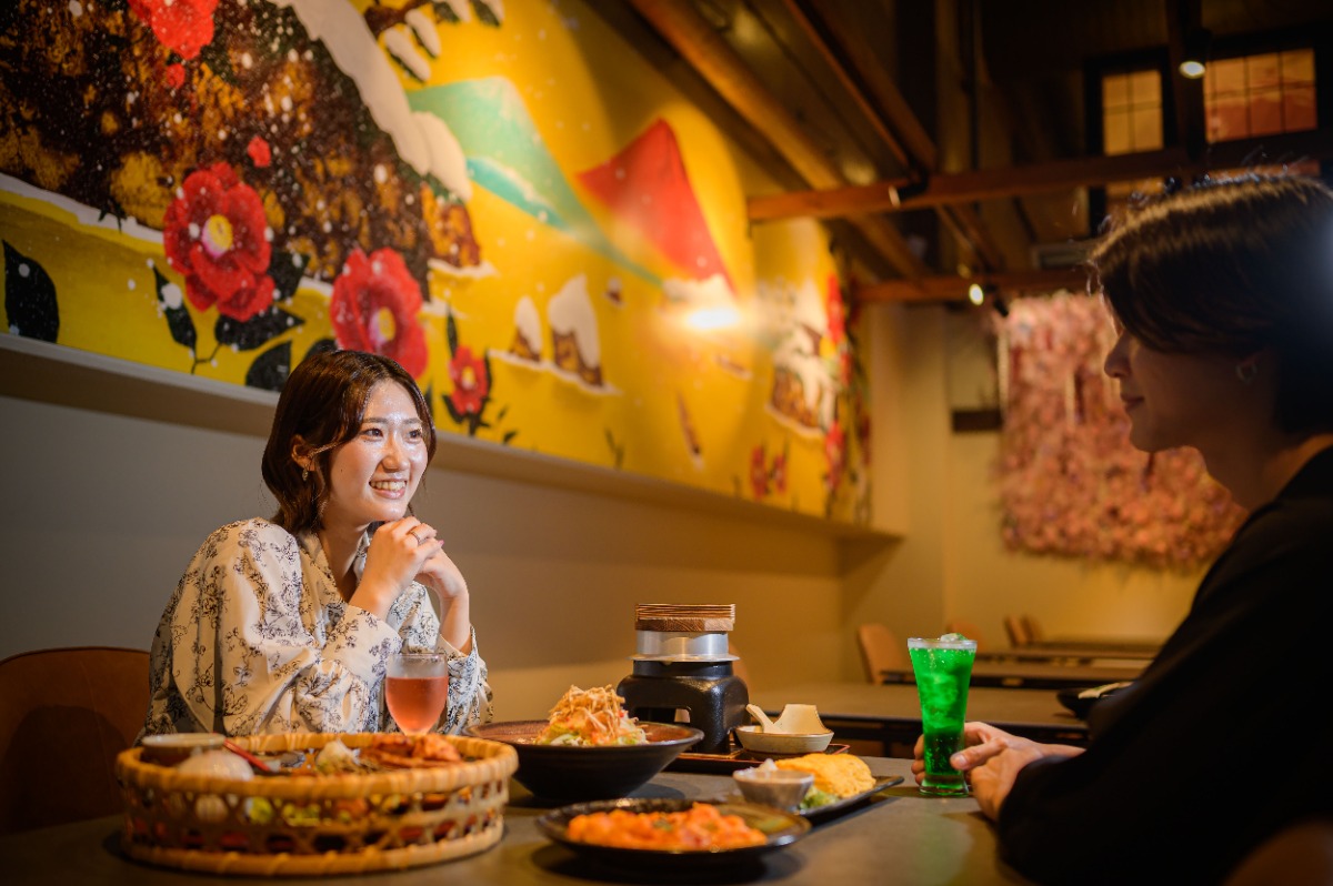 1階には郷土料理をはじめ、創作和食やイタリアン、中華など幅広い料理を提供する「花ゆらり」も併設しています。