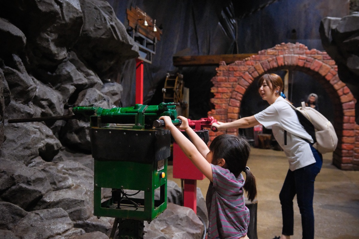 鉱山で行われていた作業を遊びながら学べる体験コーナーもあります。