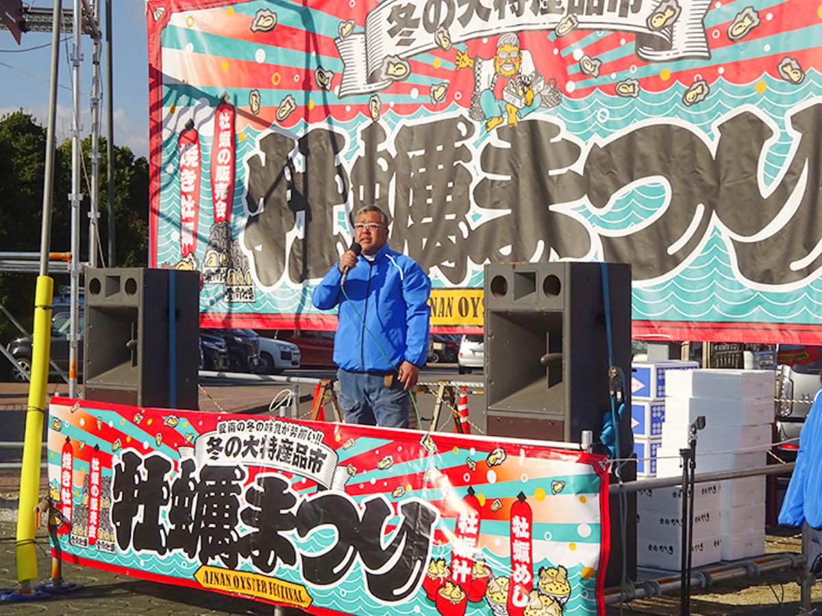 「いずれは全国の牡蠣産地から様々なグルメを集めて、一大食べ比べイベントにしたい」と語る実行委員長の上甲さん。