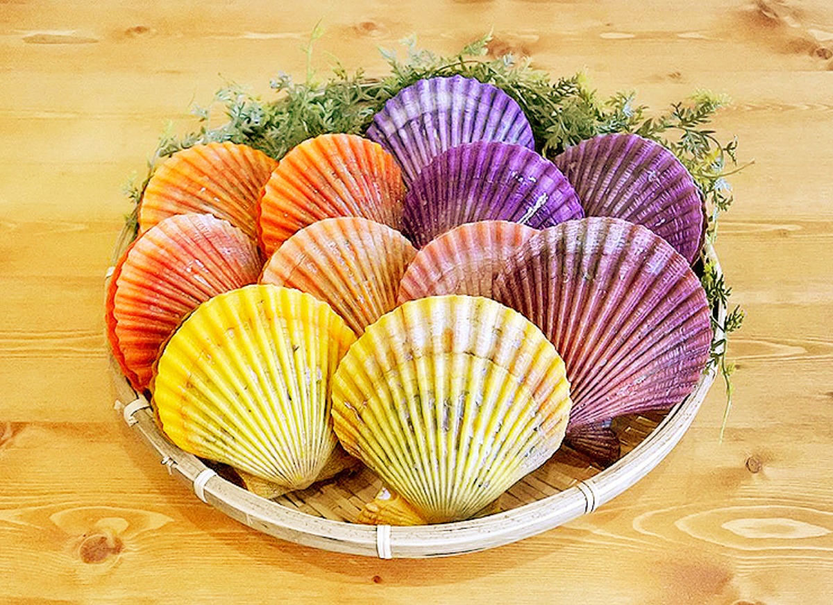 「ヒオウギ貝」は、赤や黄色、紫などカラフルな貝殻が特徴です。