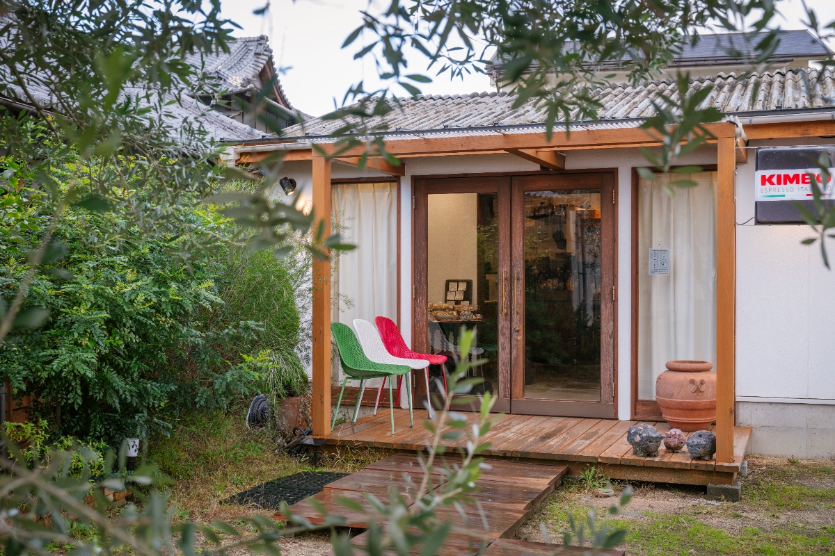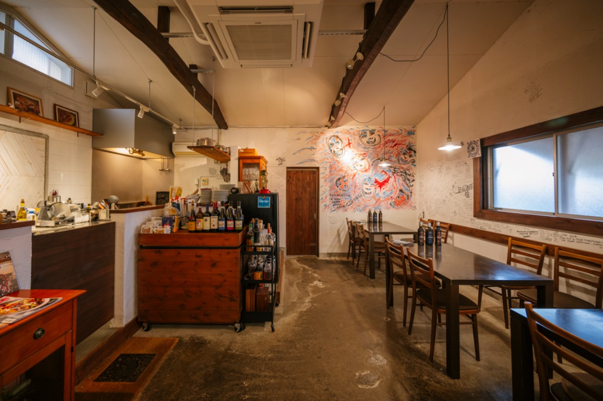 店構えは、毎週のようにイタリア人の仲間と農作業納屋に集まっては音楽やダンス、食事をした楽しかったひとときを味わっていただけるよう納屋をイメージしました。