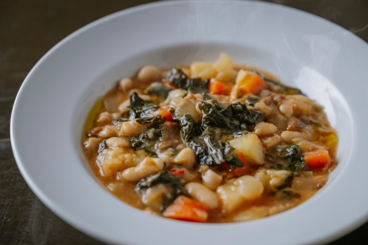カーヴォロネロと豆、パン使って粥状に仕上げたトスカーナ郷土料理「リボッリータ」。