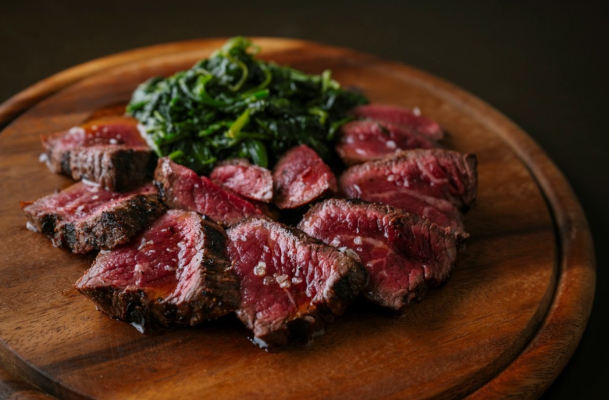 ワイルドに焼き上げた牛肉を薄く切った「牛肉のタリアータ」は、柔らかくも食べ応えのあるひと皿。