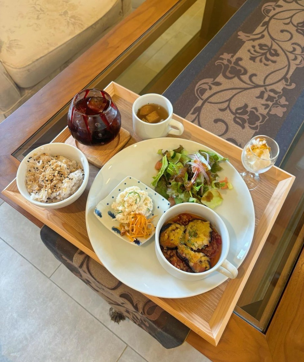 西条市の提携農家から仕入れるお米や県産無農薬野菜など、地元の食材をふんだんに取り入れたランチやモーニングをいただけます。