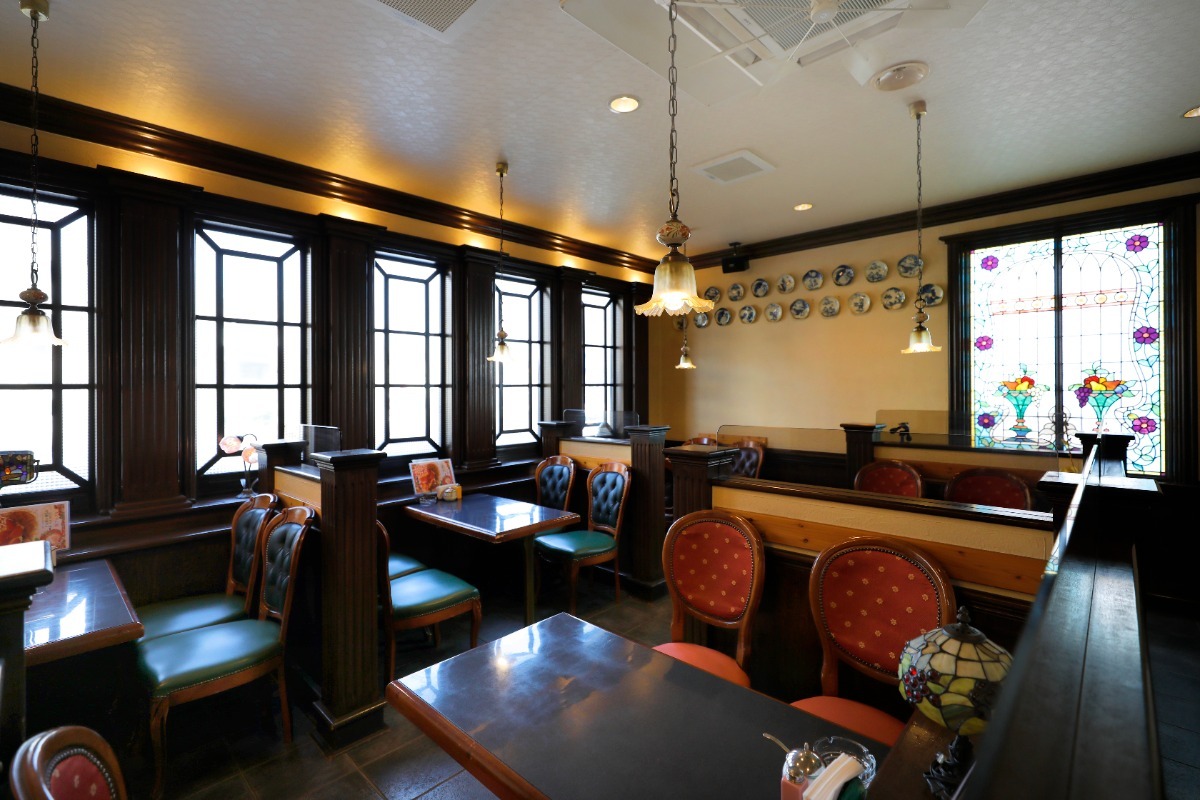 ゆったり広々とした店内は、クラシック音楽が流れる心地よい空間。