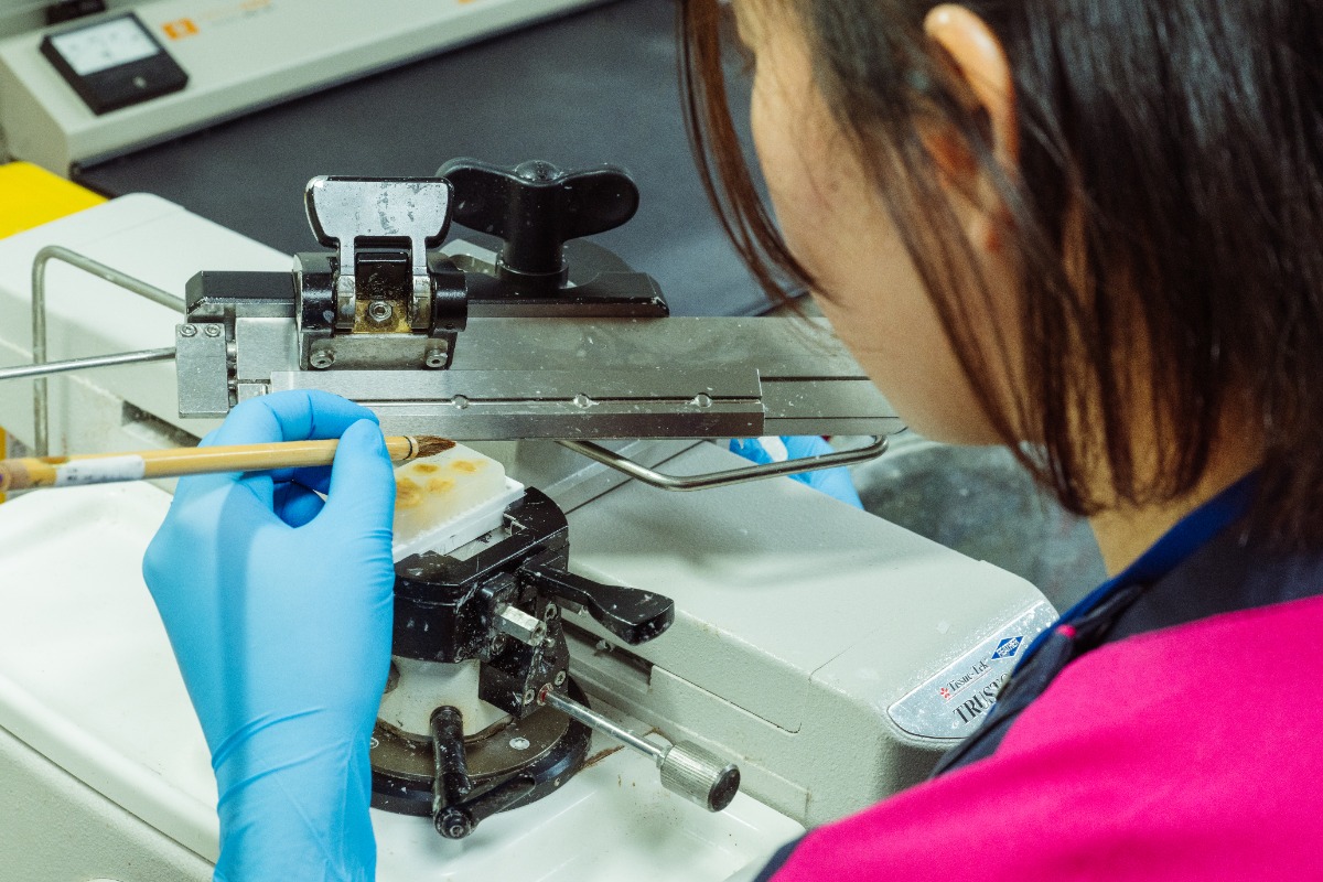 病理標本を作製している臨床検査技師(病理検査室)