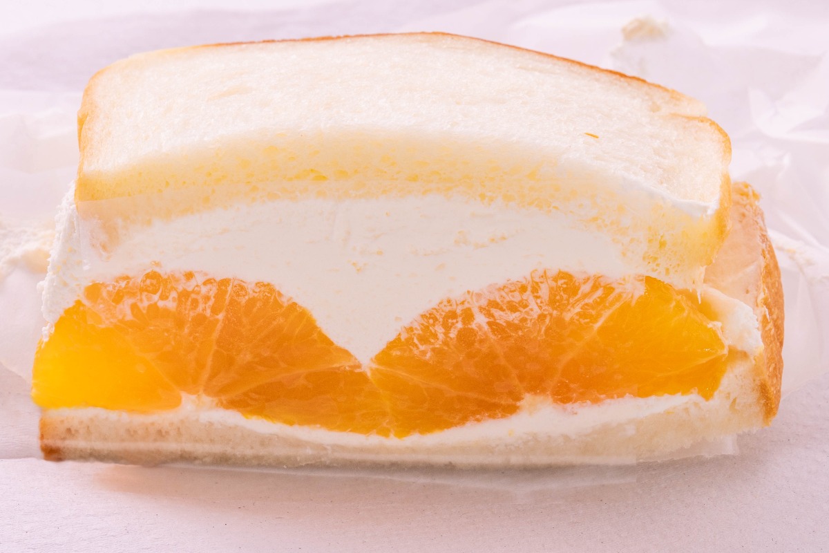 旬の果物と甘さ控えめの生クリームを挟んだ人気商品。