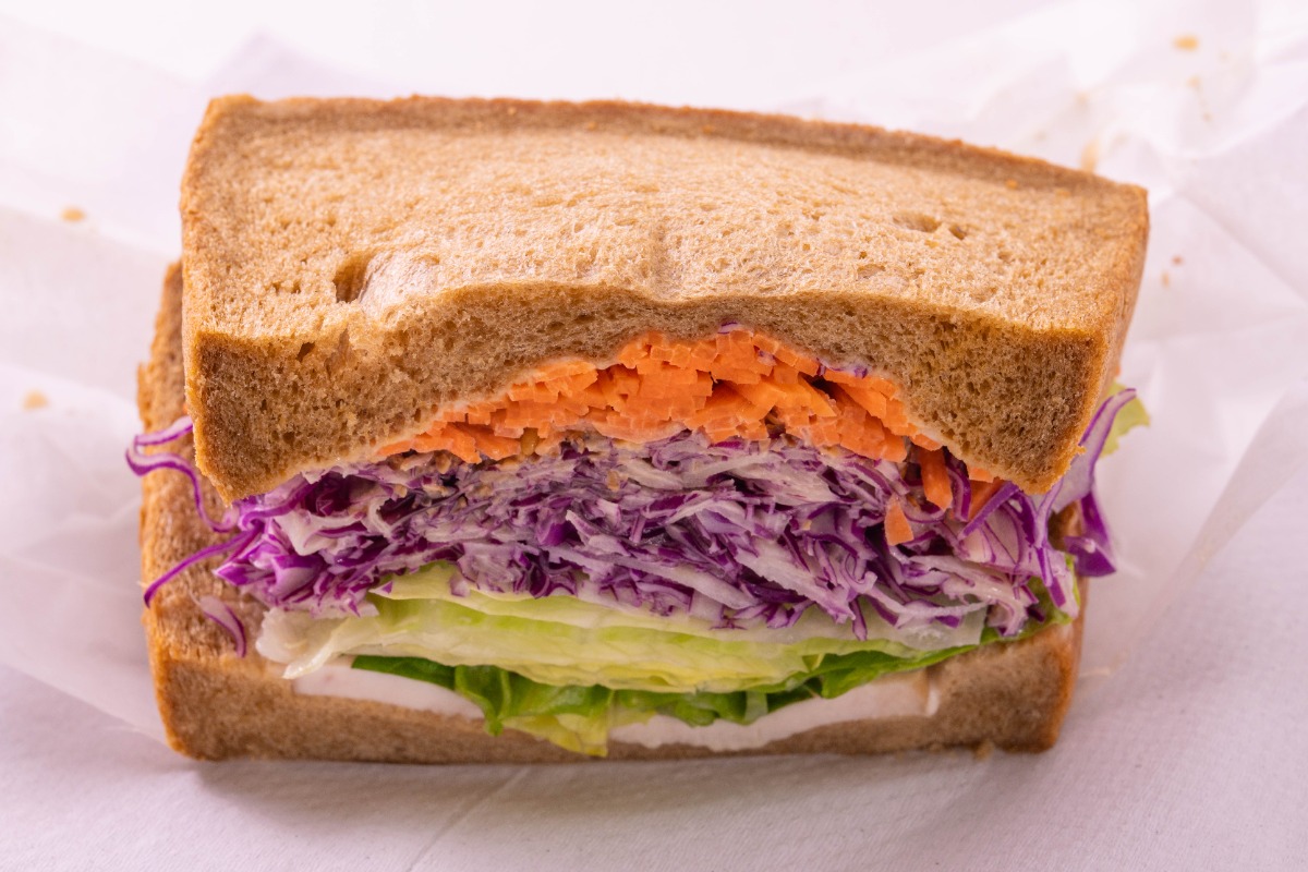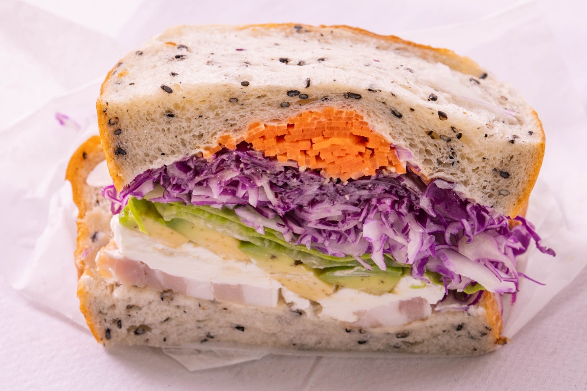 ふんわり柔らかいパンにたっぷりの野菜がサンドされており、見た目も可愛くヘルシーに食べられると、特に女性ファンが多い。